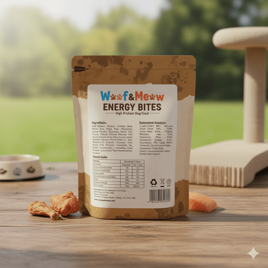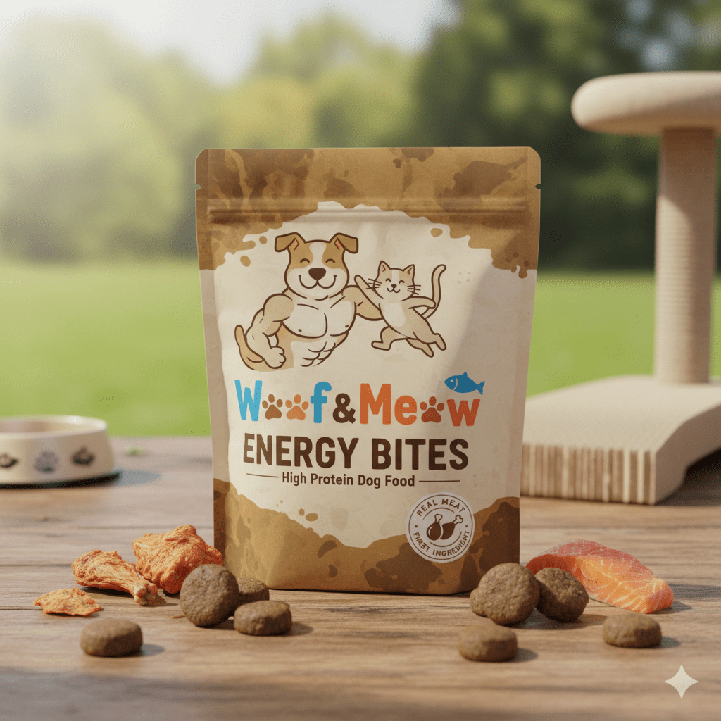 Woof & Meow Energy Bites are specially crafted with high-quality chicken and natural grains to keep your furry friend active, healthy, and full of energy. Rich in protein and essential vitamins, this meal supports muscle strength, shiny coat, and overall wellness.